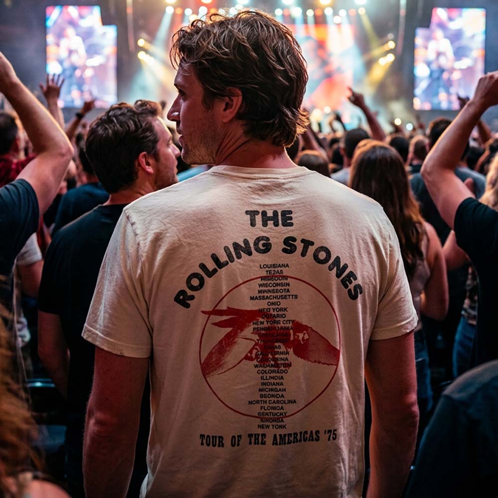 ヴィンテージ調の風合いと絶妙な色使いが、当時のライブの熱気やストーンズ特有の空気感をリアルに再現。