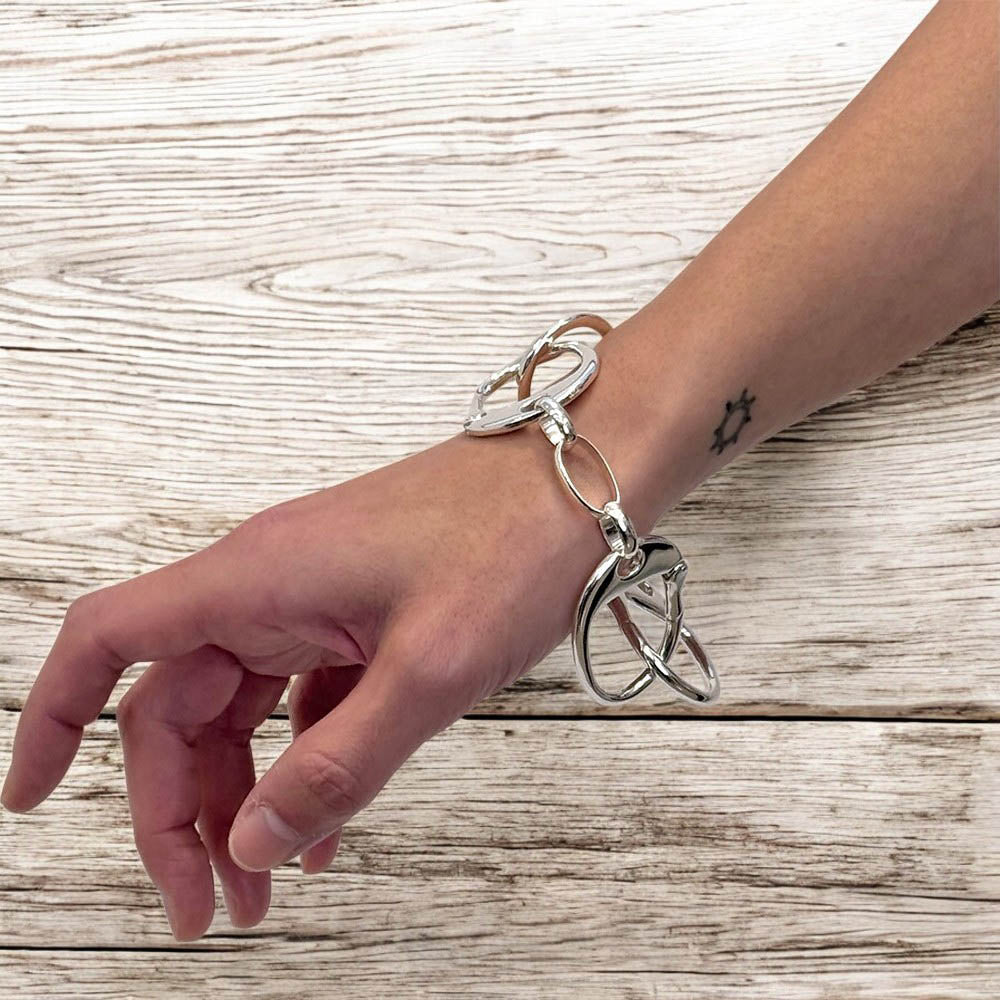 KEITH 怪胎左手腕必備單品。 女式 HAND-CUFFS 袖口尺寸小於男式尺寸。 基思在藥物試驗期間開始佩戴這些著名的袖扣。 他沒有被別人束縛,而是選擇用「袖扣」來束縛自己。 給我庇護所品牌。 材質:SILVER925 長度約 11.5 公分 x 2(連接在一起) 附有首飾盒(物品可能與照片有所不同。)
