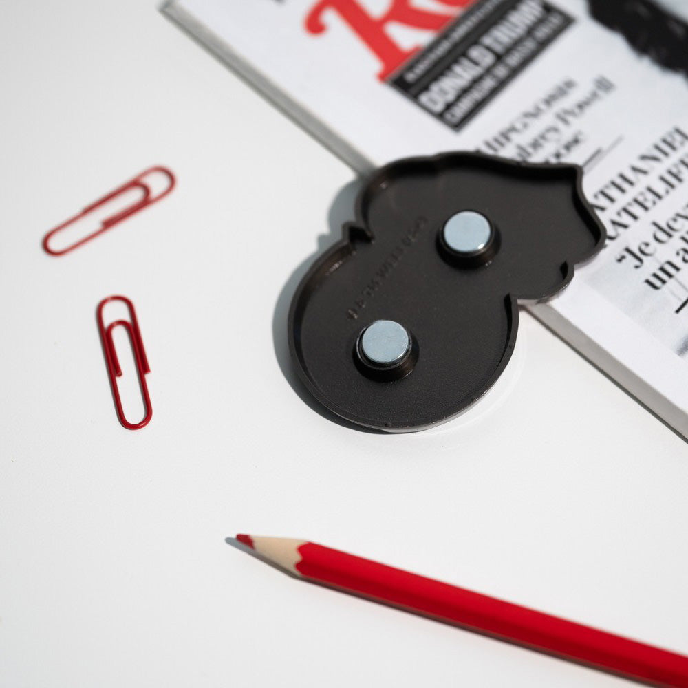冷蔵庫やロッカーなどの磁性面に手軽に取り付けることができ、インテリアアクセントとしても活躍。